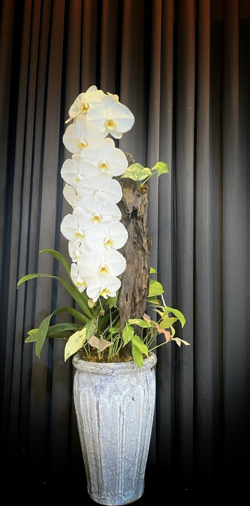 Ciao Garden – Chậu cao hồ điệp trắng công chúa tuyết 5.0 ghép lũa 1 cành – HDT085