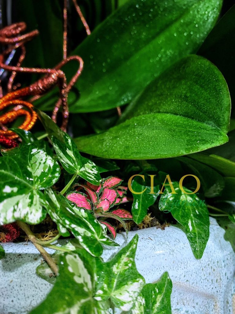 _ Chậu lan hồ điệp được thiết kế trang nhã và ấn tượng bởi đôi tay nghệ nhân của Ciao Garden. Chậu hoa không chỉ có lan hồ điệp đẹp mà bên dưới còn được thiết kế 1 tiểu cảnh gồm dây thường xuân, rêu, lá may mắn…làm tăng tính thẩm mỹ và tính riêng của chậu lan hồ điệp.