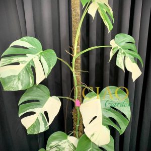 Chậu Monstera Delicosa Bosigiama Albo Variegata hay gọi tắt là Monstera Albo, là loại cây Monstera đột biến nổi tiếng và trang nhã nhất, tỉ lệ các đốm trắng lớn và hay xuất hiện thành các mảng, có khi hơn phân nửa lá. Đột biến Albo xảy ra trên dòng Monstera Deliciosa var borsigiana, mang đặc điểm của loại leo nên tốc độ phát triển tương đối nhanh. Cây có đốt thân dài, phát triển khá nhanh. Khi ổn định, cây có thể ra 2 lá mới 1 tháng.