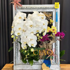 Ciao Garden – Khung tranh lan hồ điệp phối cây lá kiểng – HDL 273